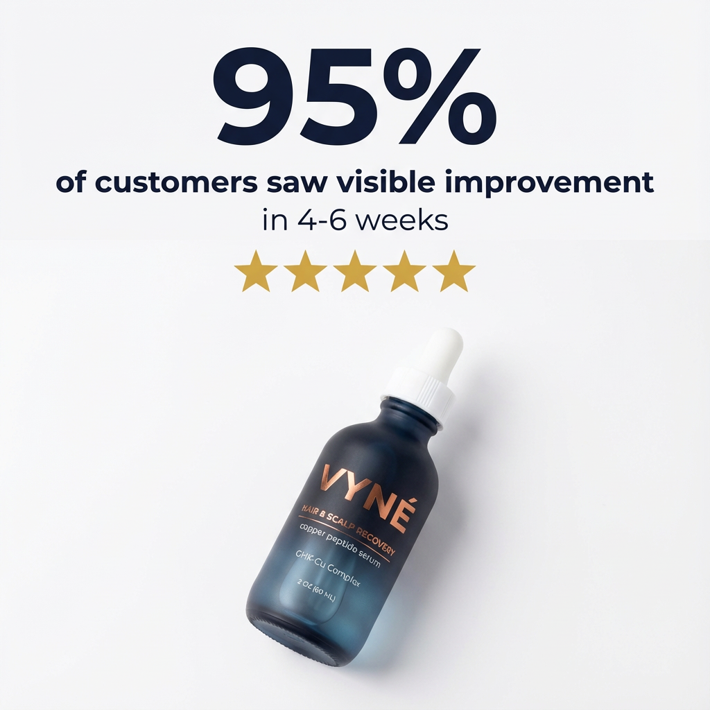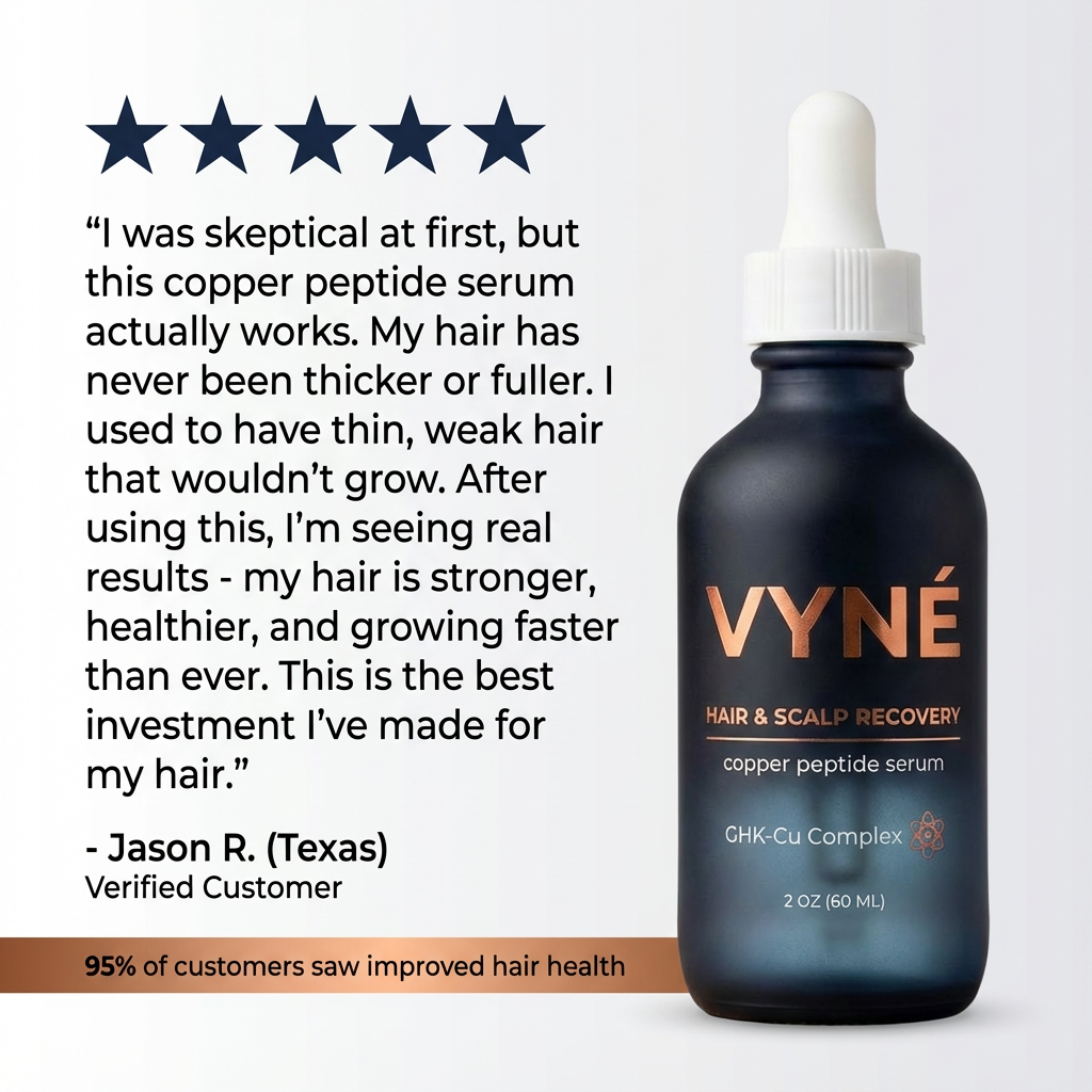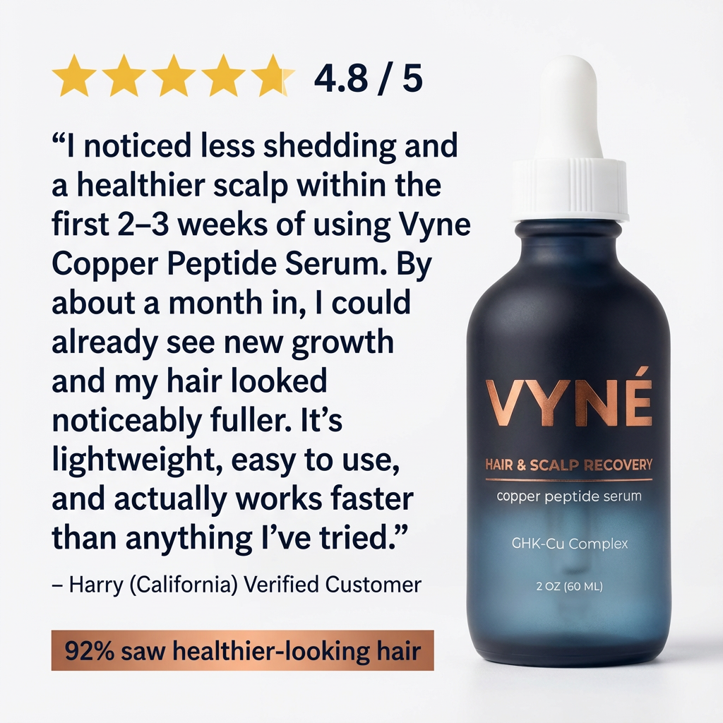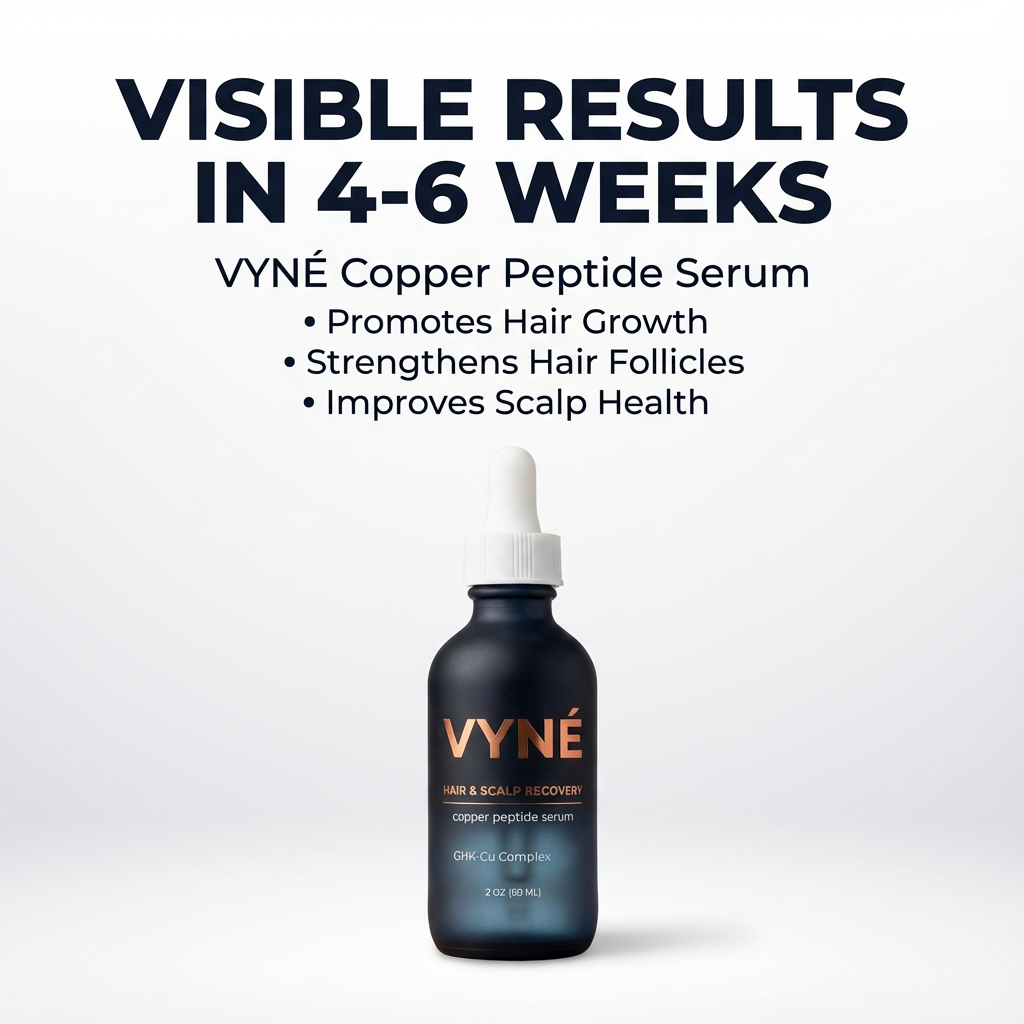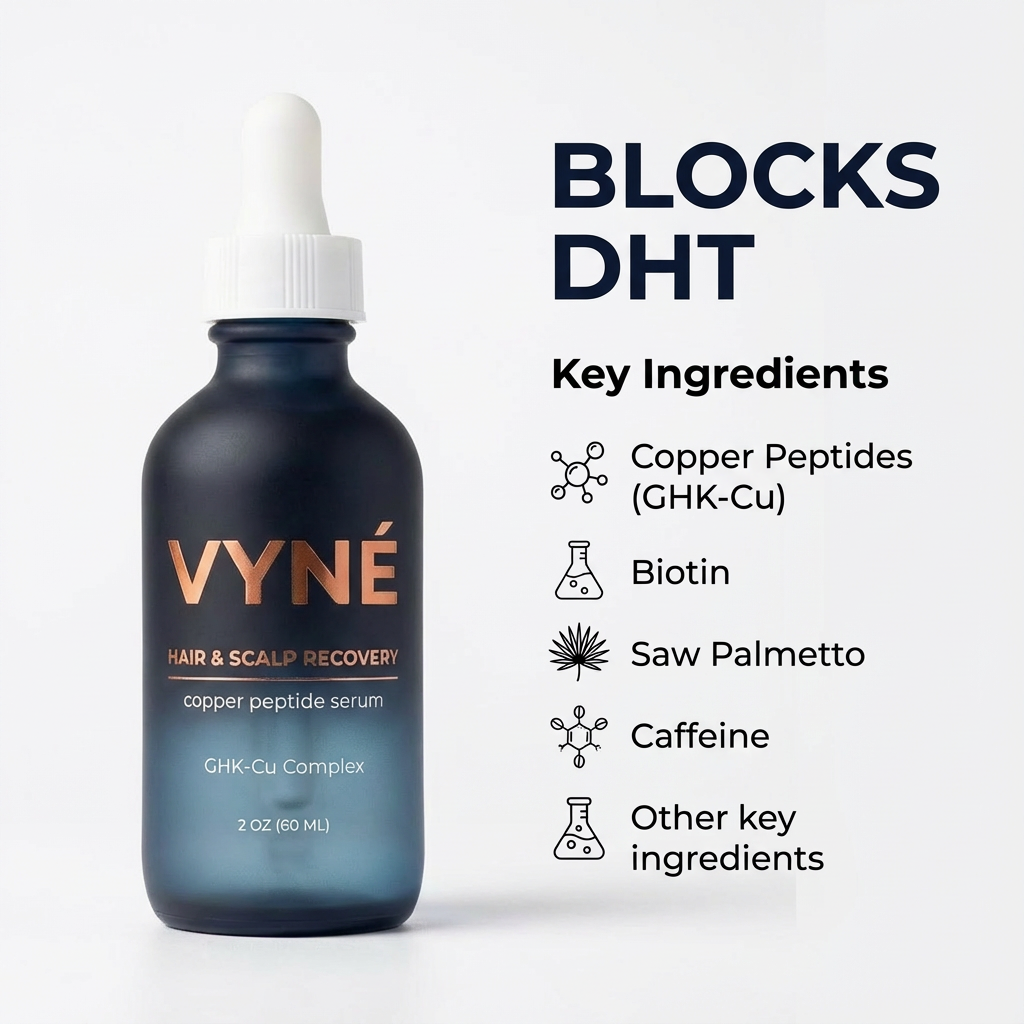 Hair thinning isn’t just about genetics. It’s about scalp health, inflammation, and follicle stress. VYNÉ Copper Peptide Serum is designed to support scalp recovery and create the conditions for healthier, stronger-looking hair over time — without harsh chemicals or gimmicks.